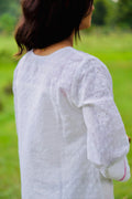 Fabric: White cotton chikankari (with self-textured embroidery all over).