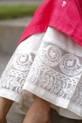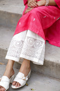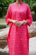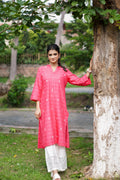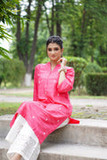 A graceful pink cotton kurta adorned with delicate white embroidery motifs styled in a straight cut with slits open for a modern yet descent look.