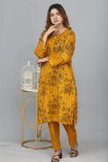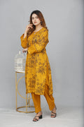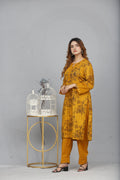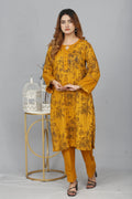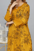 Make a statement in this golden-yellow cotton kurta adorned with eye-catching charcoal printed patterns throughout. Crafted from lightweight, breathable fabric, it ensures all-day ease and elegance. Paired with simple solid - color pants, this look is perfect for day events, weekend get-togethers, or a relaxed ethnic vibe. A perfect mix of comfort and style!