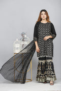 Unveil the magic of midnight elegance with Noir Bloom – a luxurious 2-piece ensemble that blends timeless black with radiant foil accents and blooming embroidery.