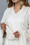 Nooré Sheer Elegance – White Embroidered 3-Piece Suit