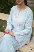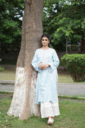 A sky-haze kurta adorned with delicate embroidery on the neckline and cuffs with two different lace detailing. Elegant, breathable, and perfect for both casual and semi-formal wear.