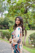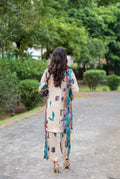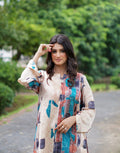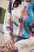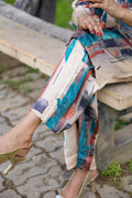“Abstract Aura Silk Cord Set” ✨A long, relaxed-fit open shirt with a bottom opening and full sleeves. It carries an abstract print in earthy beige, teal blue, rust orange, and deep black tones, giving it a modern artistic vibe.